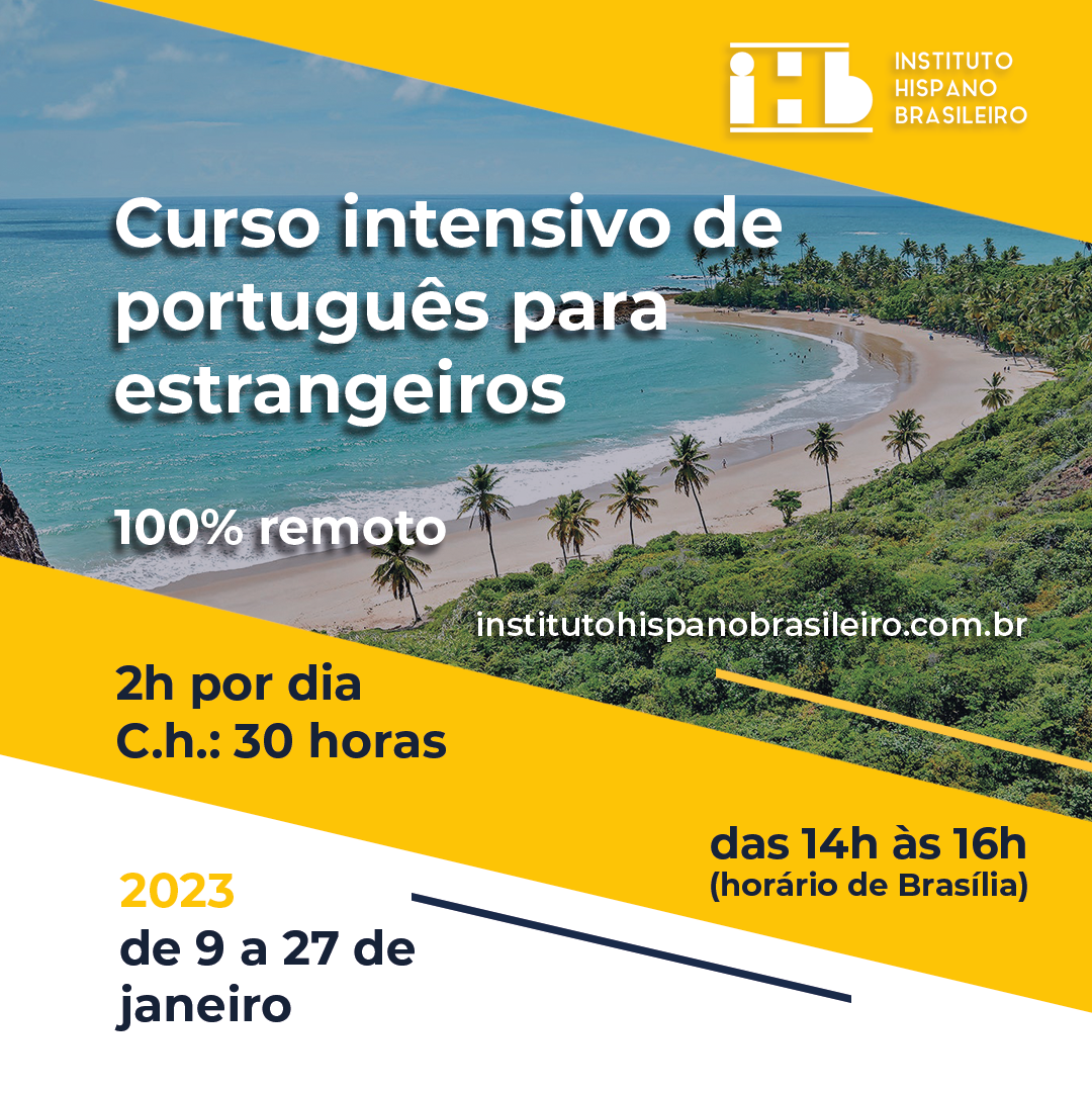 Site - IHB WhatsApp Facebook Instagram [Abertura de edital] - Prova de proficiência de compreensão leitora em Espanhol para estudos de pós-graduação Curso preparatório para proficiência de compreensão leitora em espanhol para estudos de pós-graduação [Inscrições abertas] - Curso intensivo de português para estrangeiros. Níveis A1 - A2 - B1 - B2 Taller virtual - La competencia plurilingüe en la enseñanza y aprendizaje de ELE: claves para el profesor [Curso] - Espanhol para serviços turísticos [Curso] - Espanhol para empresas SIELE - REMOTO SIELE - CENTRO FEDELE